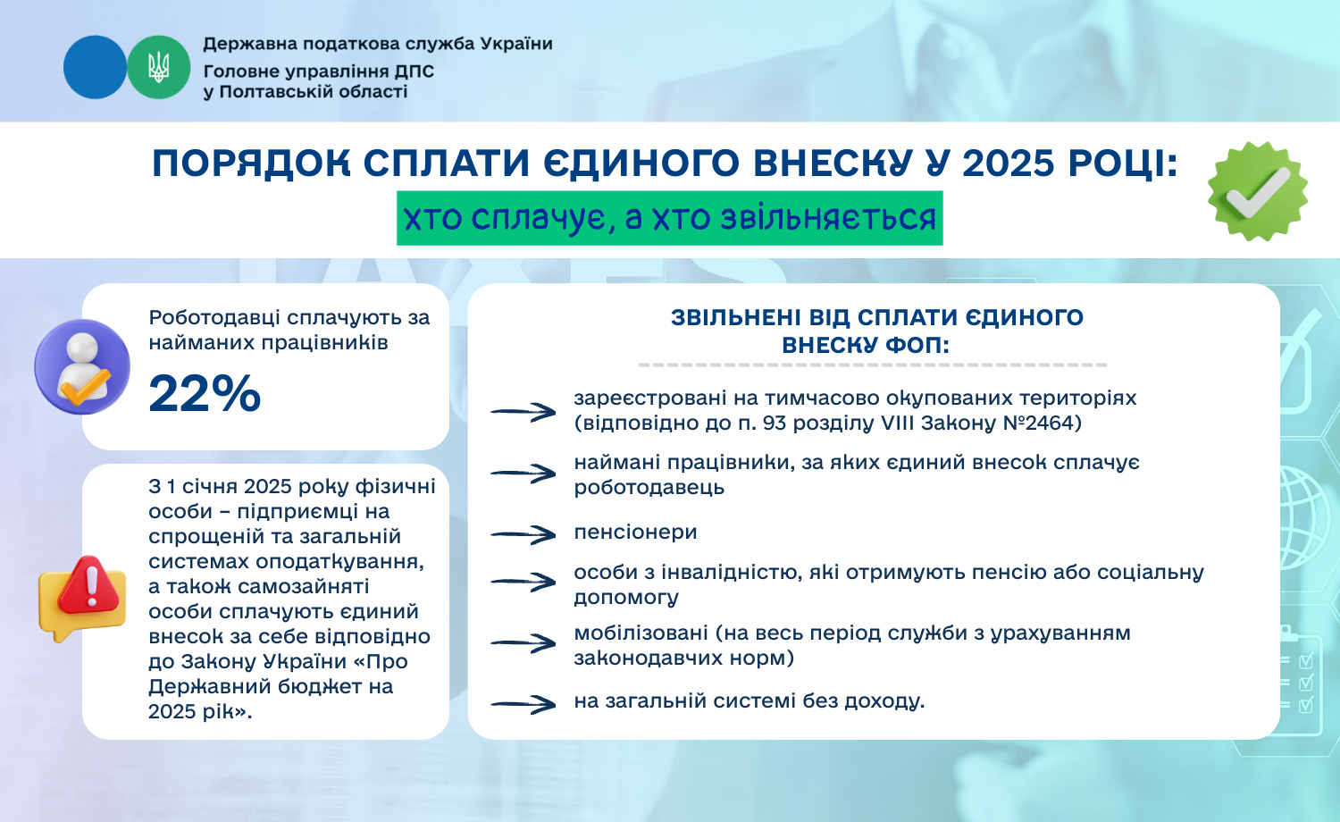 Порядок сплати єдиного внеску у 2025 році: хто сплачує, а хто звільняється