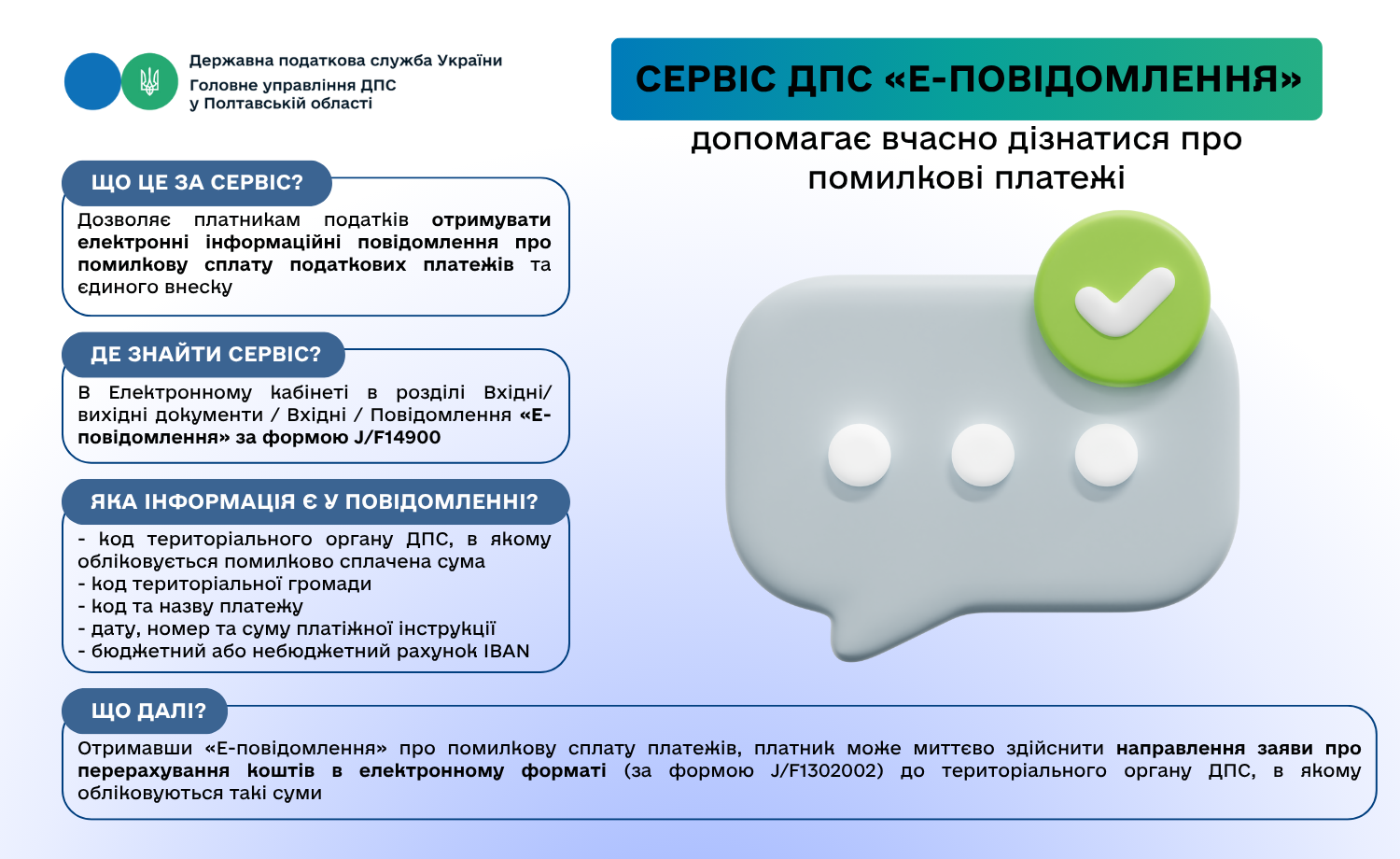 Сервіс ДПС «Е-повідомлення» допомагає вчасно дізнатися про помилкові платежі