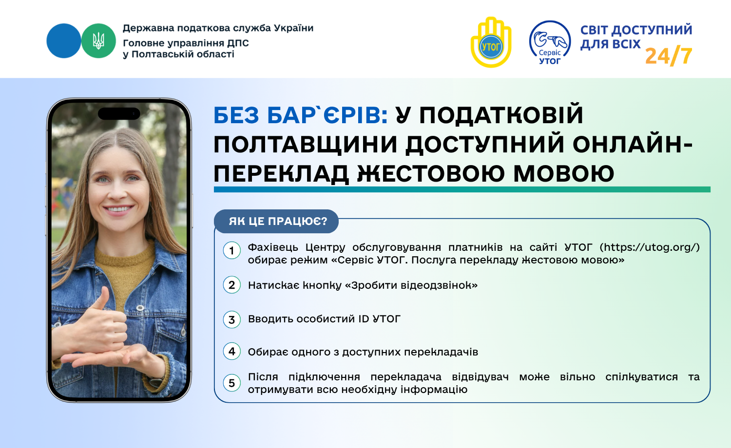 Без бар’єрів: у податковій Полтавщини доступний онлайн-переклад жестовою мовою для людей з порушенням слуху