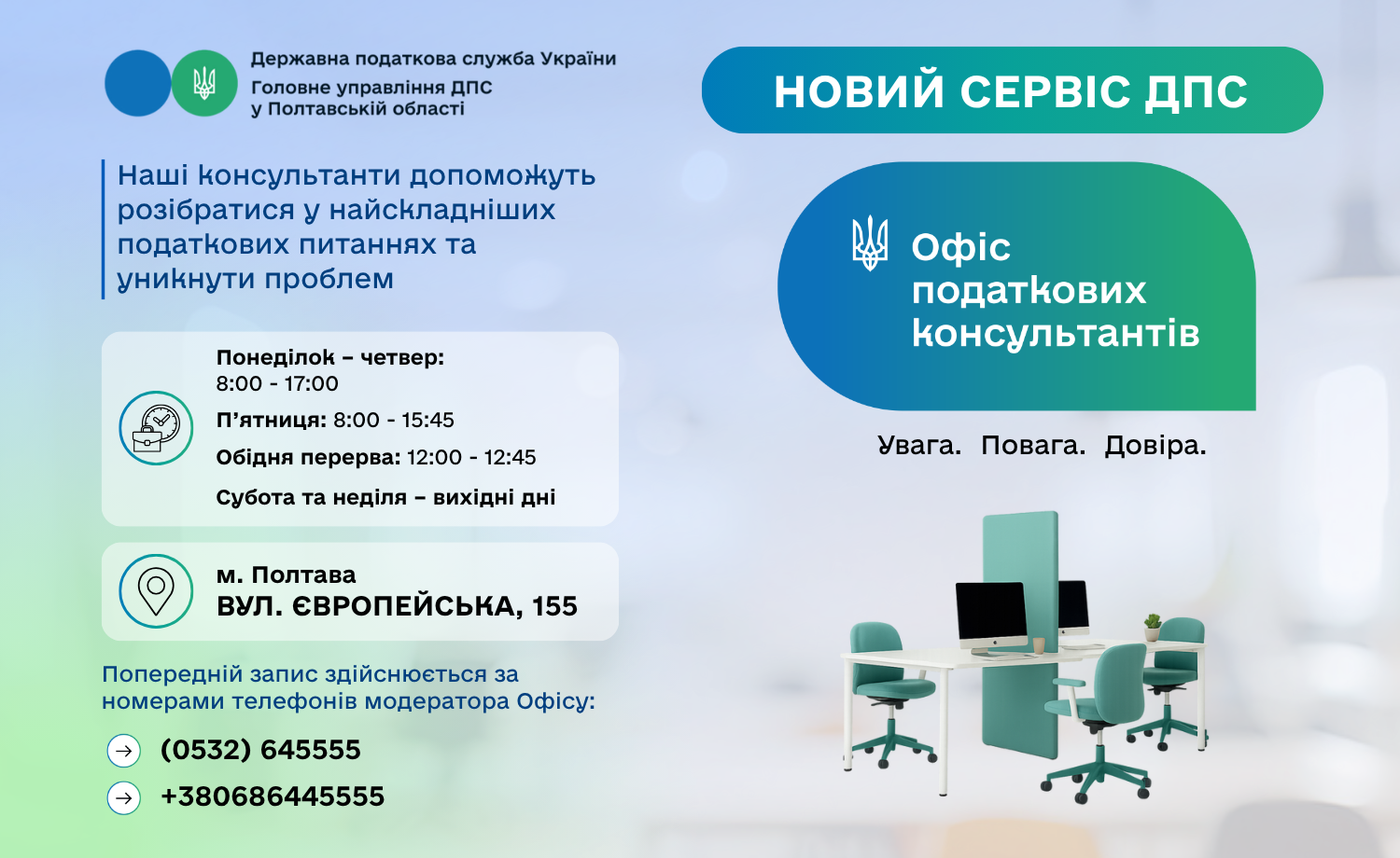 Новий сервіс ДПС – Офіс податкових консультантів: Увага. Повага. Довіра.