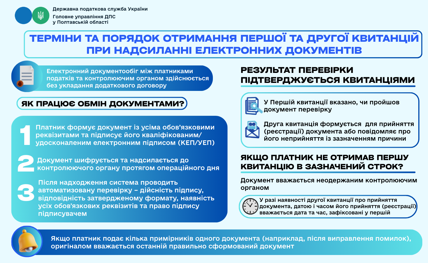 Терміни та порядок отримання першої та другої квитанцій при надсиланні електронних документів