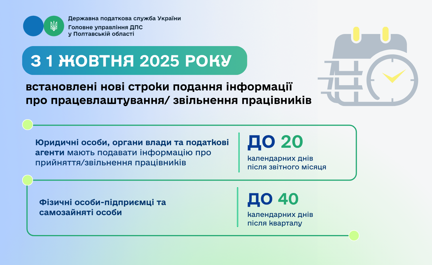 З 1 жовтня 2025 року встановлені нові строки подання інформації про працевлаштування/ звільнення працівників