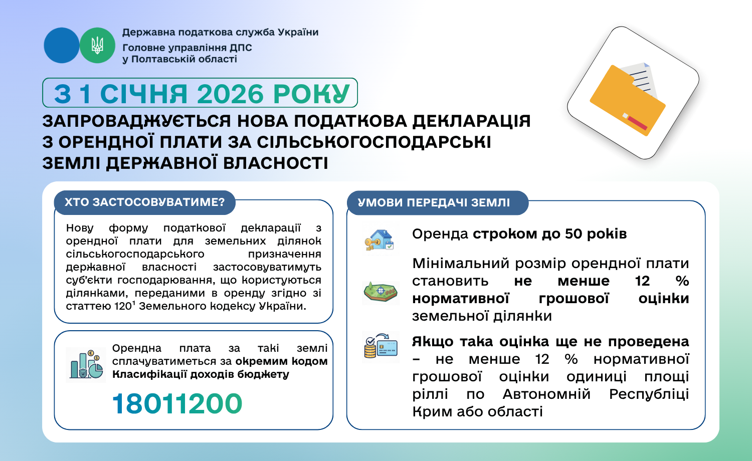 З 1 січня 2026 року запроваджується нова податкова декларація з орендної плати за сільськогосподарські землі державної власності