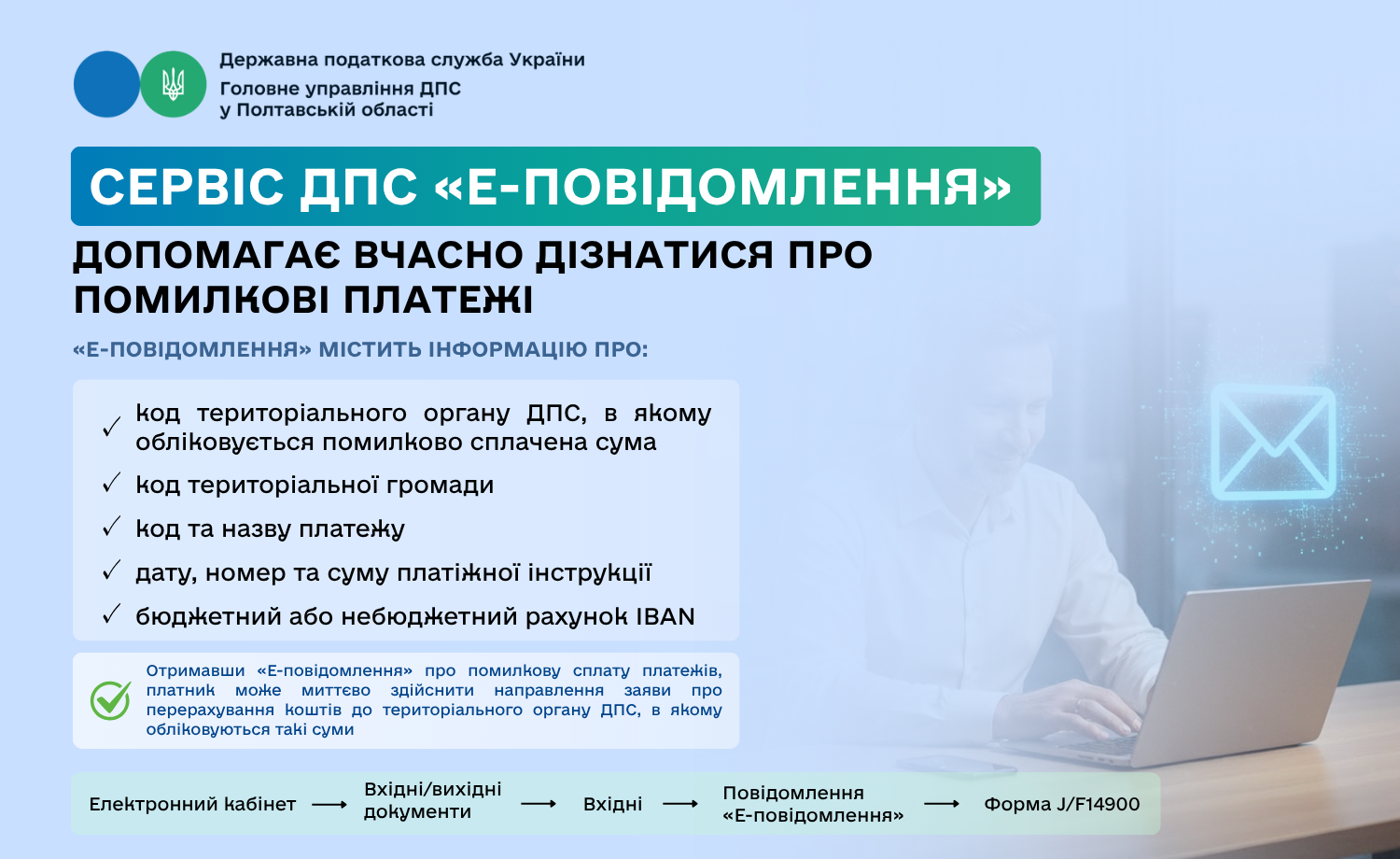 Сервіс ДПС «Е-повідомлення» допомагає вчасно дізнатися про помилкові платежі