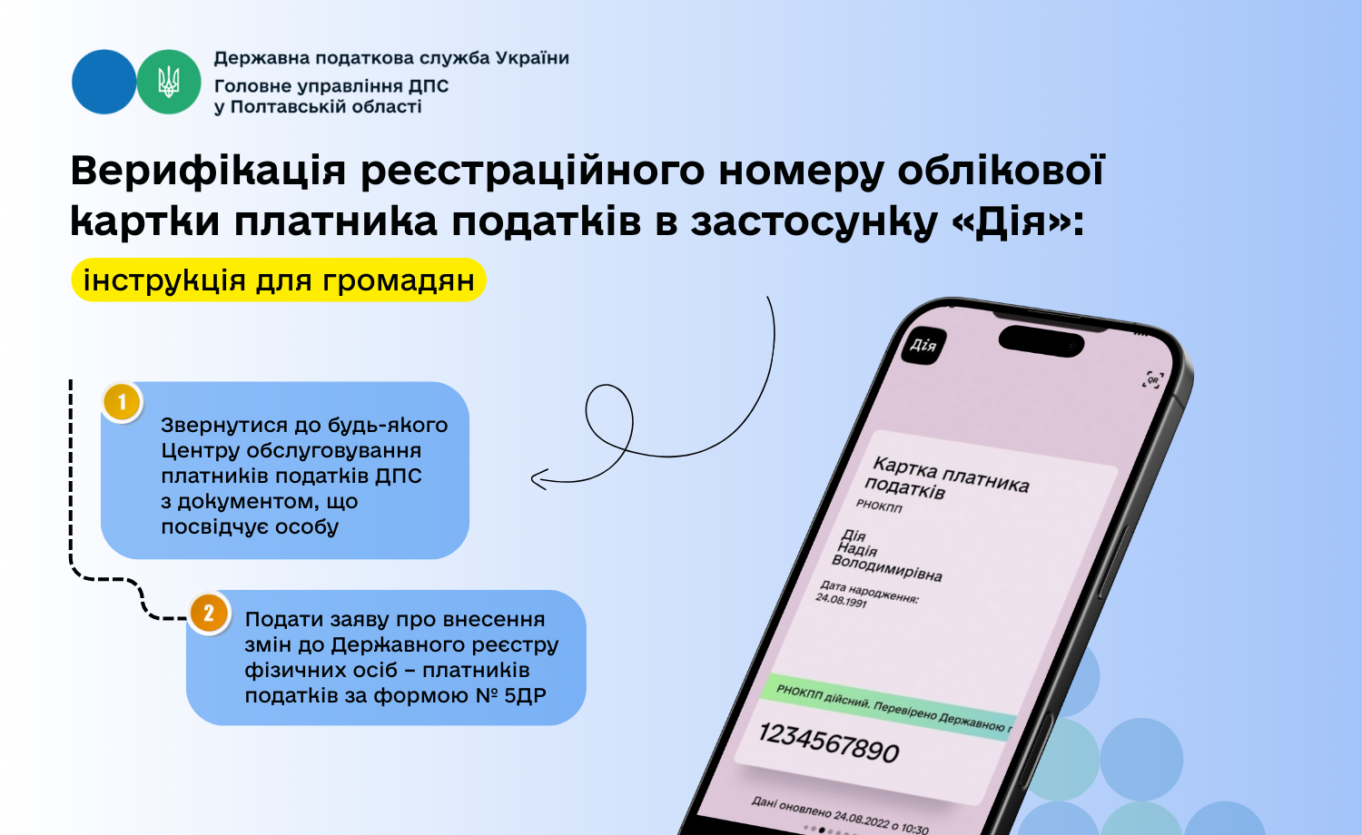 Верифікація реєстраційного номеру облікової картки платника податків в застосунку «Дія»: інструкція для громадян
