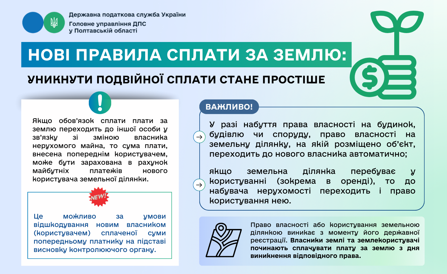 Нові правила сплати за землю: уникнути подвійної сплати стане простіше