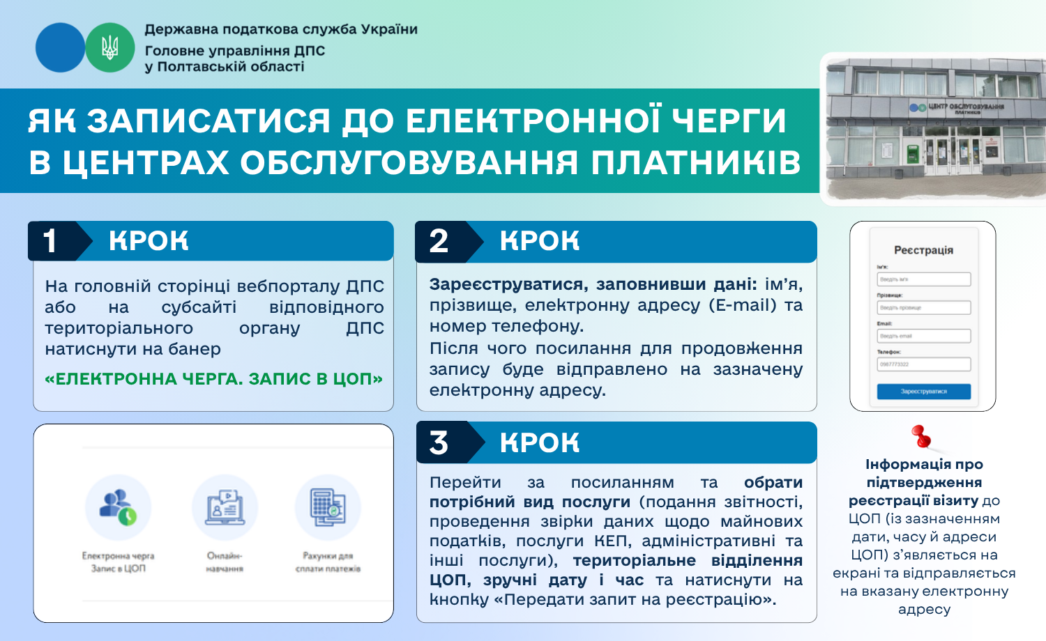 Як записатися до електронної черги в Центрах обслуговування платників