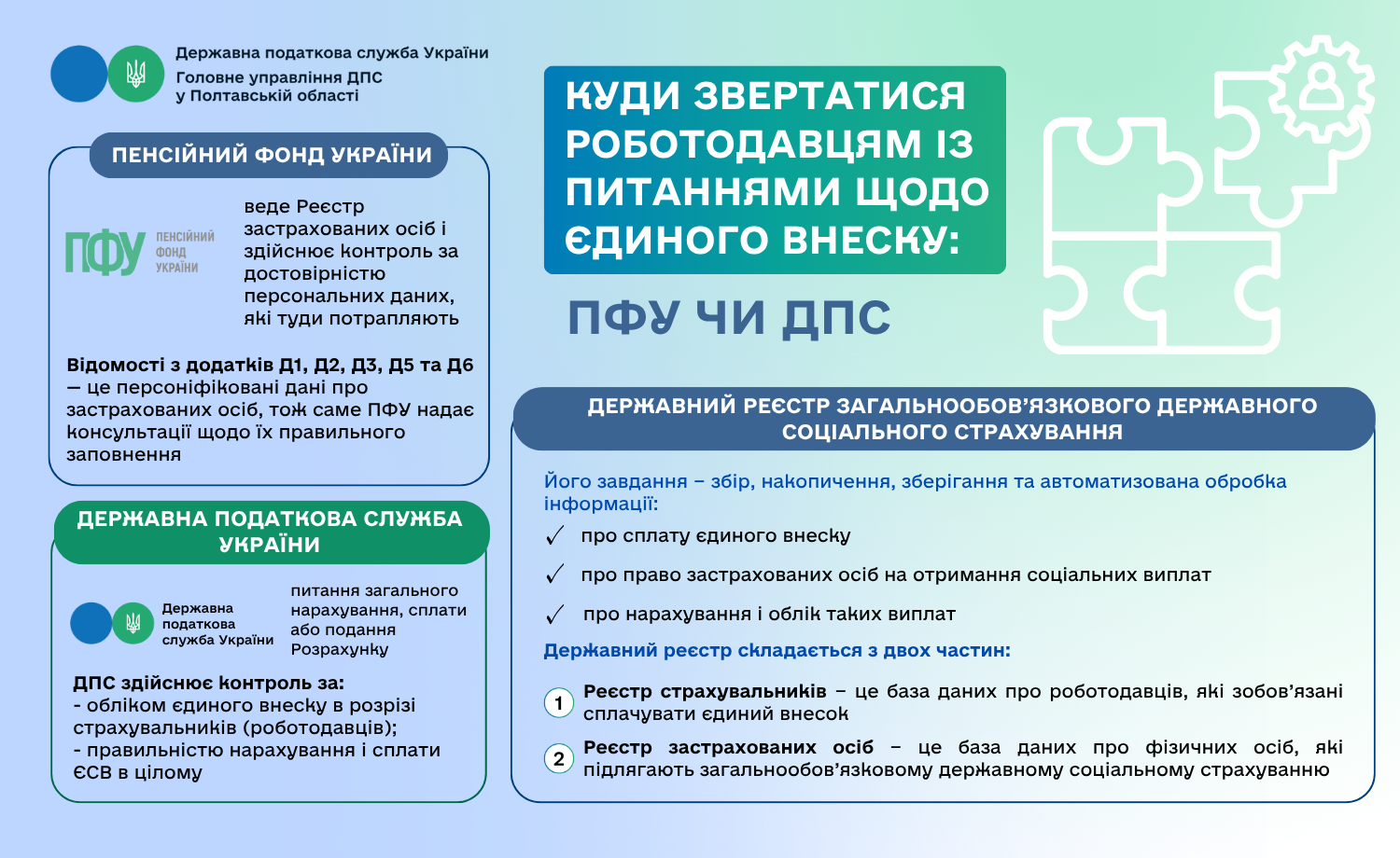 Куди звертатися роботодавцям із питаннями щодо єдиного внеску: ПФУ чи ДПС
