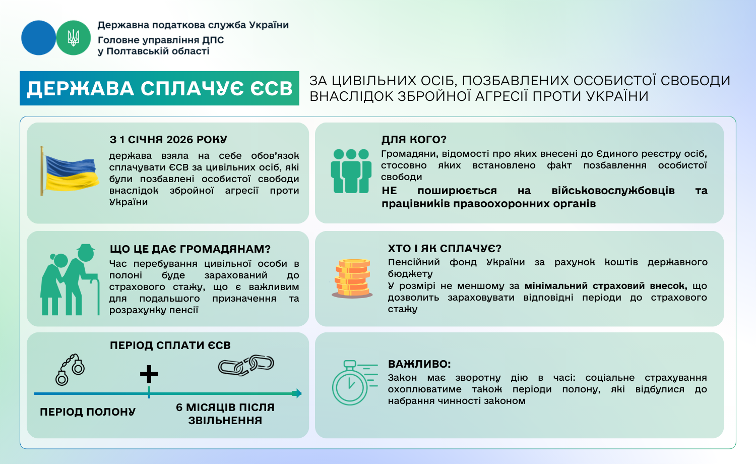 Держава сплачує ЄСВ за цивільних осіб, позбавлених особистої свободи внаслідок збройної агресії проти України