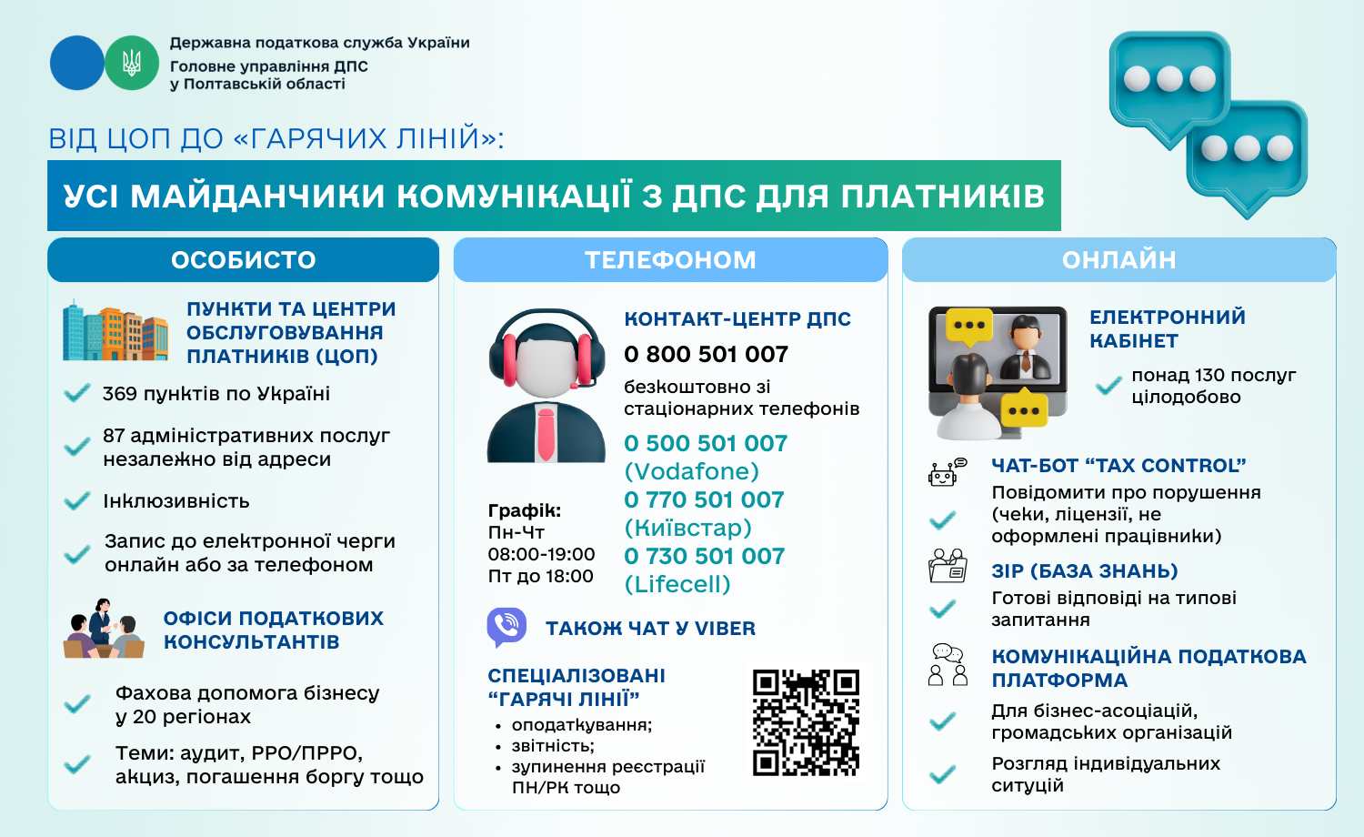 Від ЦОП до «гарячих ліній»: усі майданчики комунікації з ДПС для платників