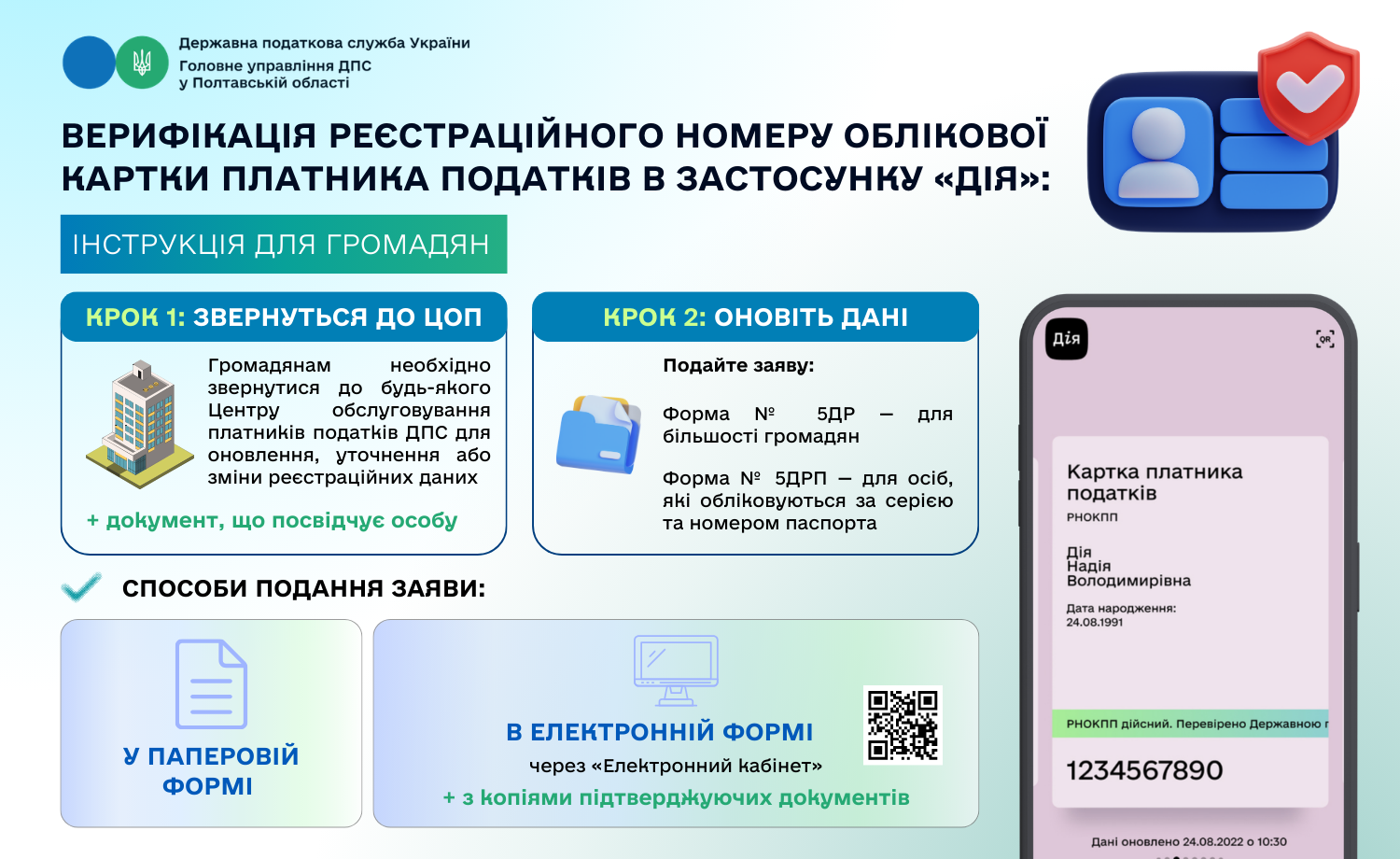 Верифікація реєстраційного номеру облікової картки платника податків в застосунку «Дія»: інструкція для громадян
