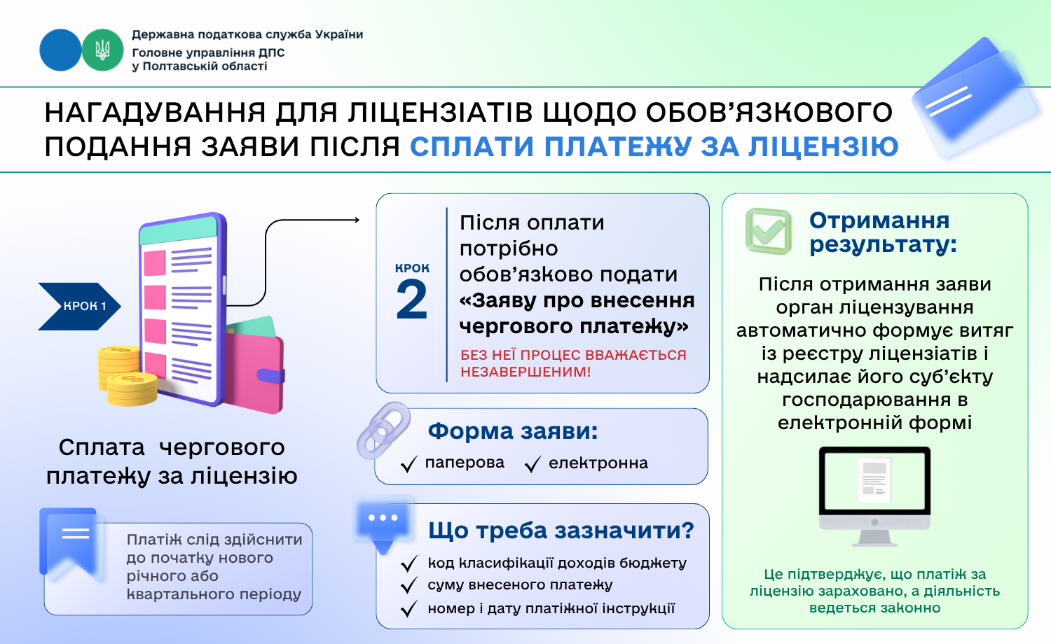 Нагадування для ліцензіатів щодо обов’язкового подання заяви після сплати платежу за ліцензію