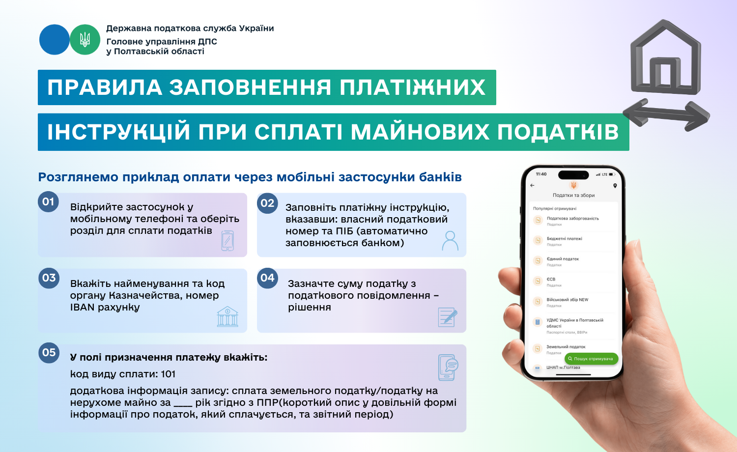 Правила заповнення платіжних інструкцій при сплаті майнових податків