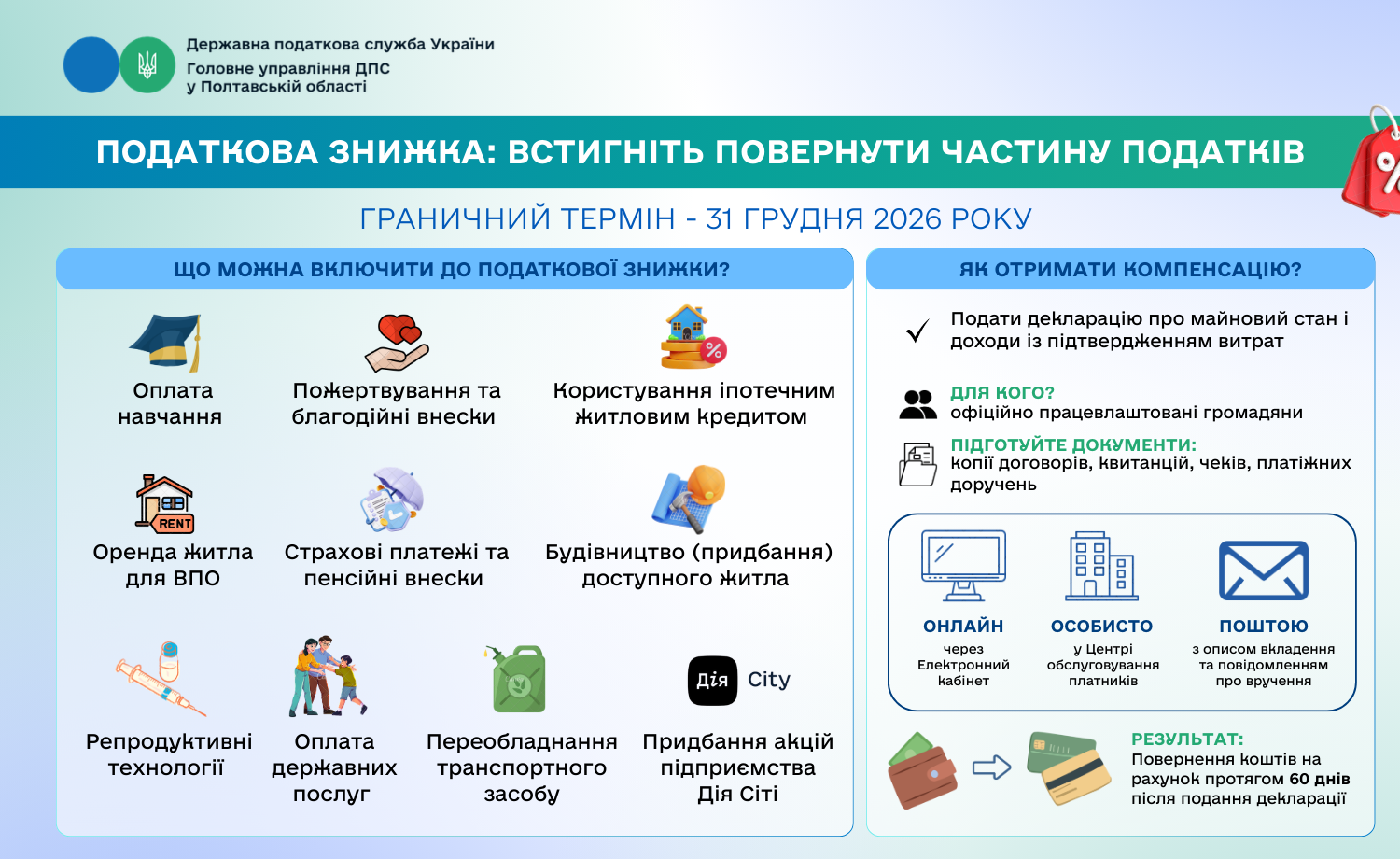 Податкова знижка: встигніть повернути частину податків