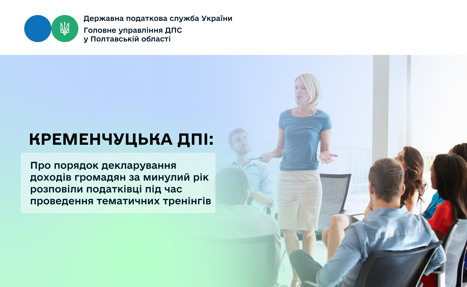 Минулого тижня провідні фахівці Горішньоплавнівського, Глобинського, Козельщинського, Семенівського Центрів обслуговування платників Кременчуцької ДПІ Головного управління ДПС у Полтавській області провели серію тематичних тренінгів для платників податків.
