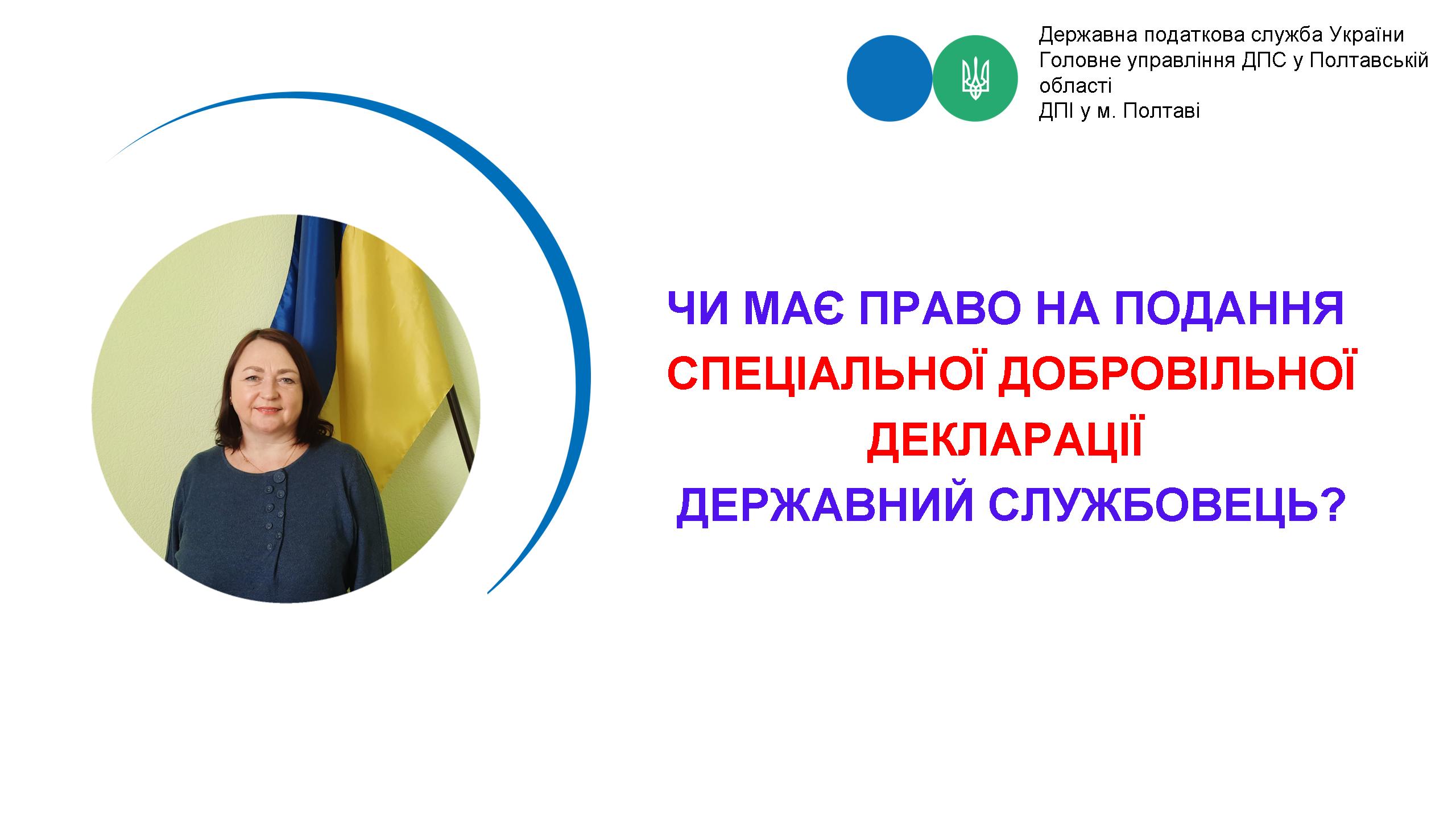 До ДПІ у м. Полтаві ГУ ДПС у Полтавській області в телефонному режимі звернувся платник податків з наступним запитанням: «Чи має право на подання одноразової спеціальної декларації державний службовець»?