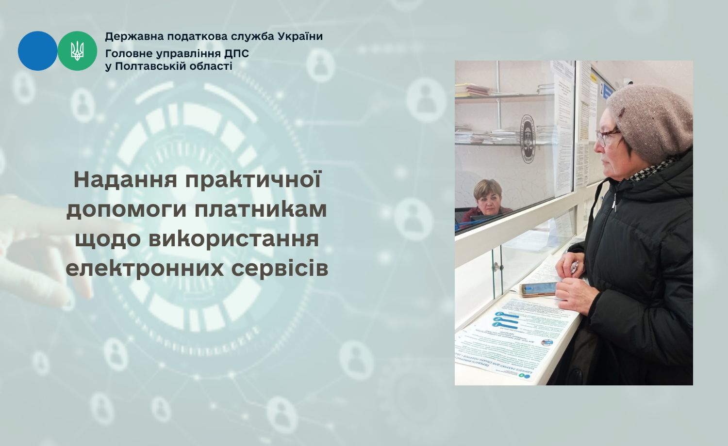 Фахівці Гадяцької ДПІ Головного управління ДПС у Полтавській області на постіній онсові проводять інформаційно-роз'яснювальну роботу з платниками податків, які відвідують Гадяцьку ДПІ, зокрема, надають практичну допомогу, проводять навчальні тренінги щодо користування електронними сервісами ДПС.
