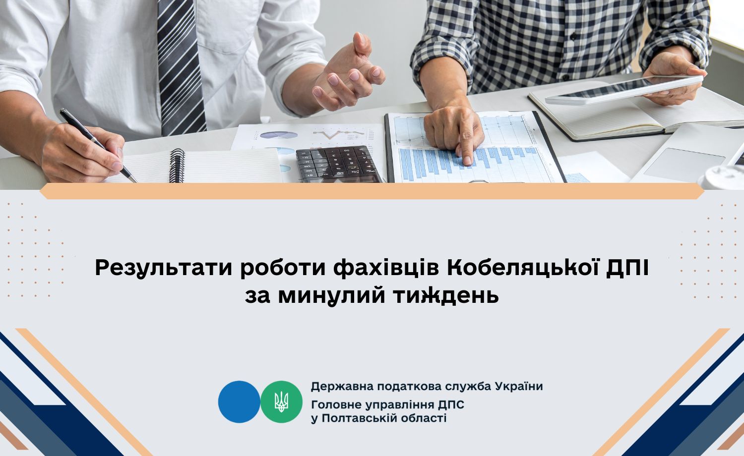 Результати роботи фахівців Кобеляцької ДПІ за минулий тиждень