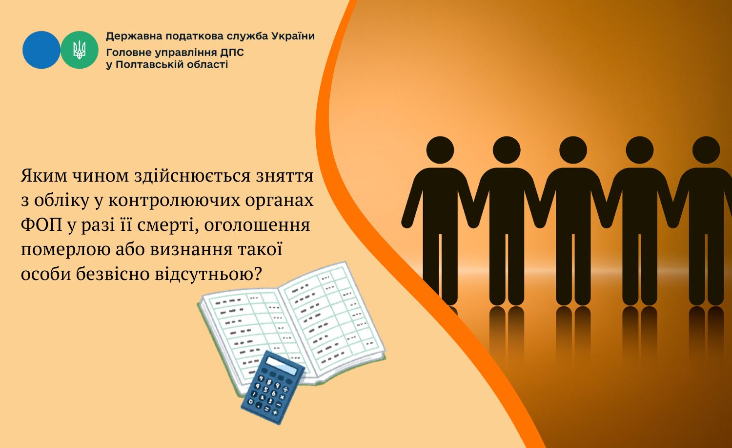 Диканська ДПІ Головного управління ДПС у Полтавській області інформує, що відповідно до п. 2 частини першої ст. 9 Закону України від 15 травня 2003 року № 755-IV «Про державну реєстрацію юридичних осіб, фізичних осіб – підприємців та громадських формувань» із змінами та доповненнями (далі – Закон № 755) відомості, зокрема, про фізичну особу – підприємця вносяться до Єдиного державного реєстру юридичних осіб, фізичних осіб – підприємців та громадських формувань (далі – ЄДР) на підставі документів, що подаються для проведення реєстраційних дій.