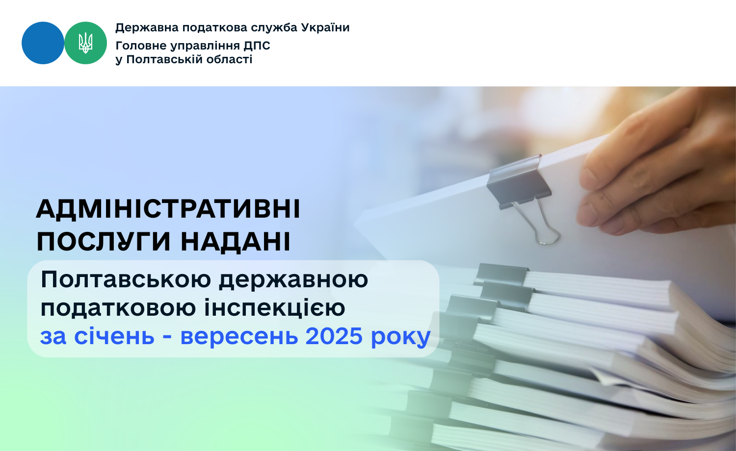 Адміністративні послуги надані Полтавською державною податковою інспекцією за січень - вересень 2025 року