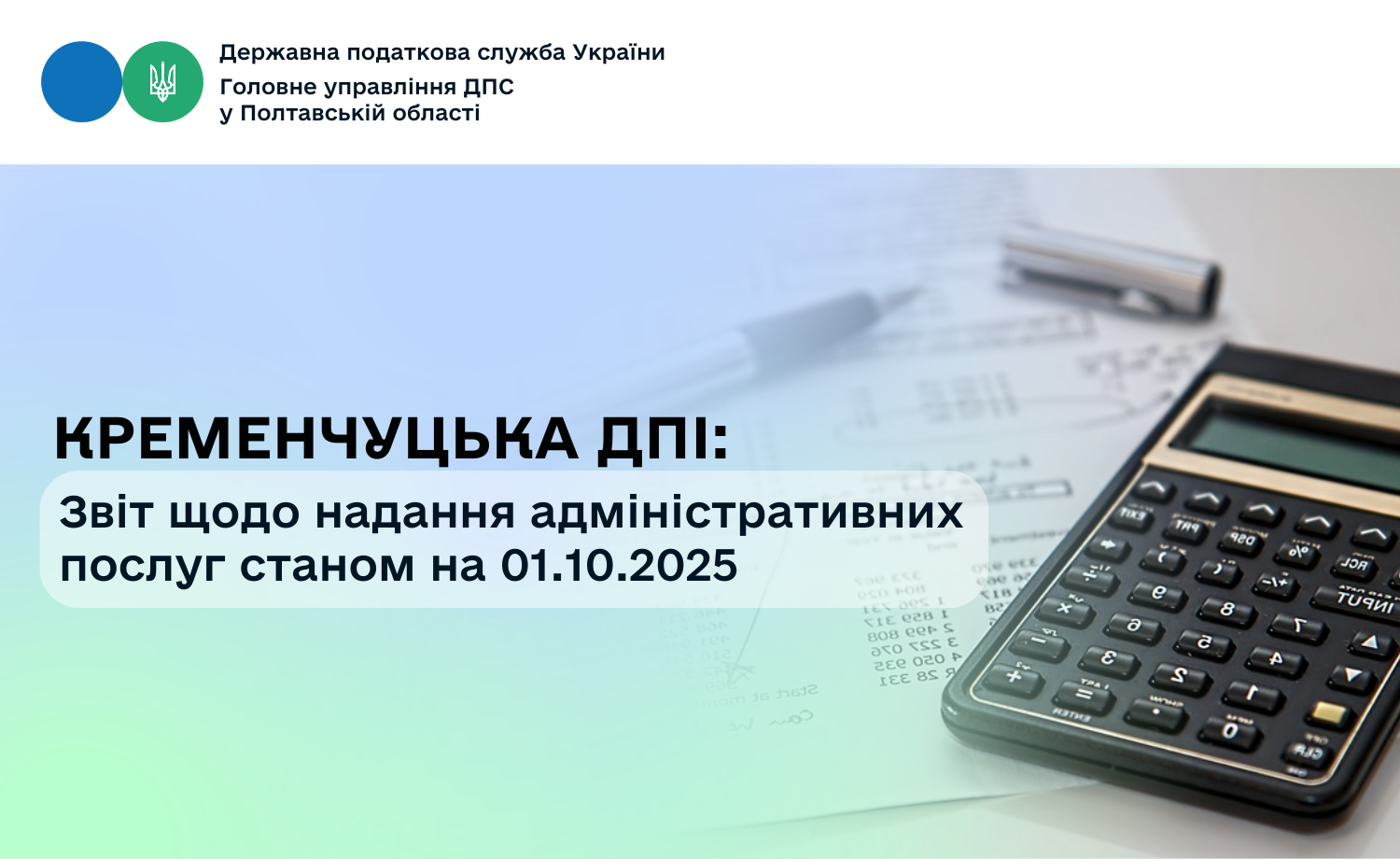 Кременчуцька ДПІ: Звіт щодо надання адміністративних послуг станом на 01.10.2025
