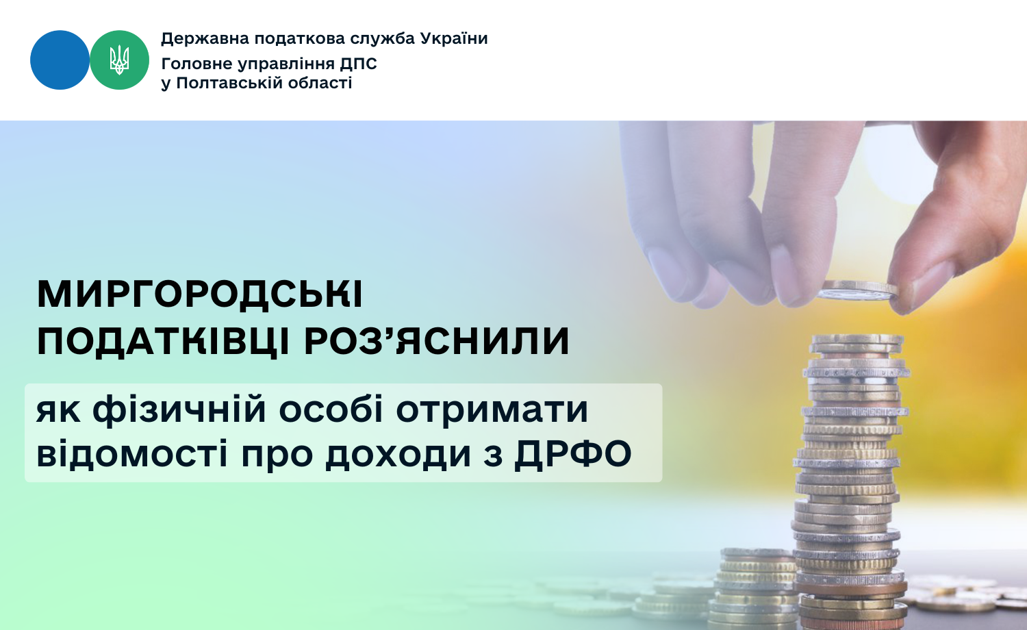 Фахівцями Миргородської ДПІ Головного управління ДПС у Полтавській області було проведено чергову зустріч з платниками податків, під час якої надано роз’яснення щодо можливості отримання фізичними особами відомостей з Державного реєстру фізичних осіб – платників податків (далі — ДРФО) про джерела та суми нарахованих доходів, а також сплачені податки на доходи фізичних осіб та військовий збір.