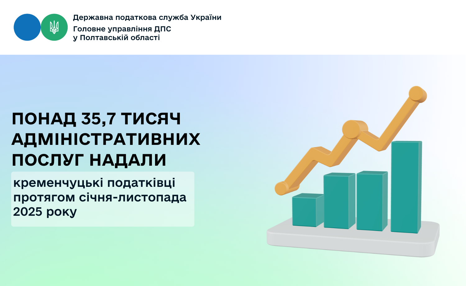Станом на 1 грудня 2025 року спеціалістами Кременчуцької ДПІ опрацьовано 37 483 звернення щодо отримання адміністративних послуг, з яких фактично надано 35 716.