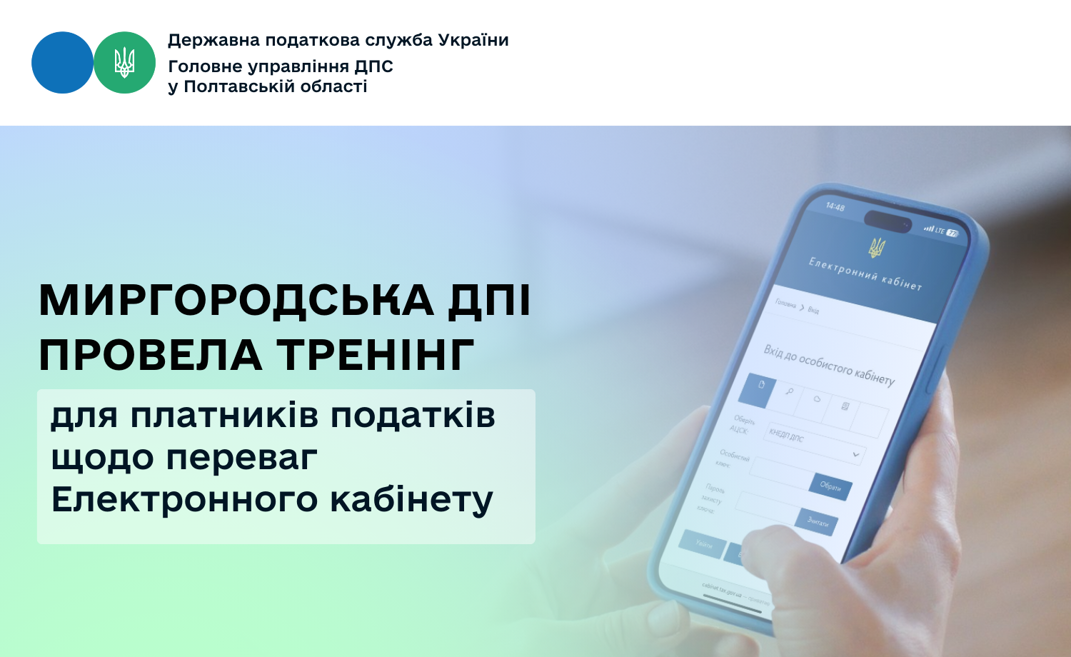 Фахівці Миргородської ДПІ ГУ ДПС у Полтавській області провели черговий тренінг, під час якого учасників ознайомили з функціональними можливостями Електронного кабінету та мобільного застосунку «Моя податкова».