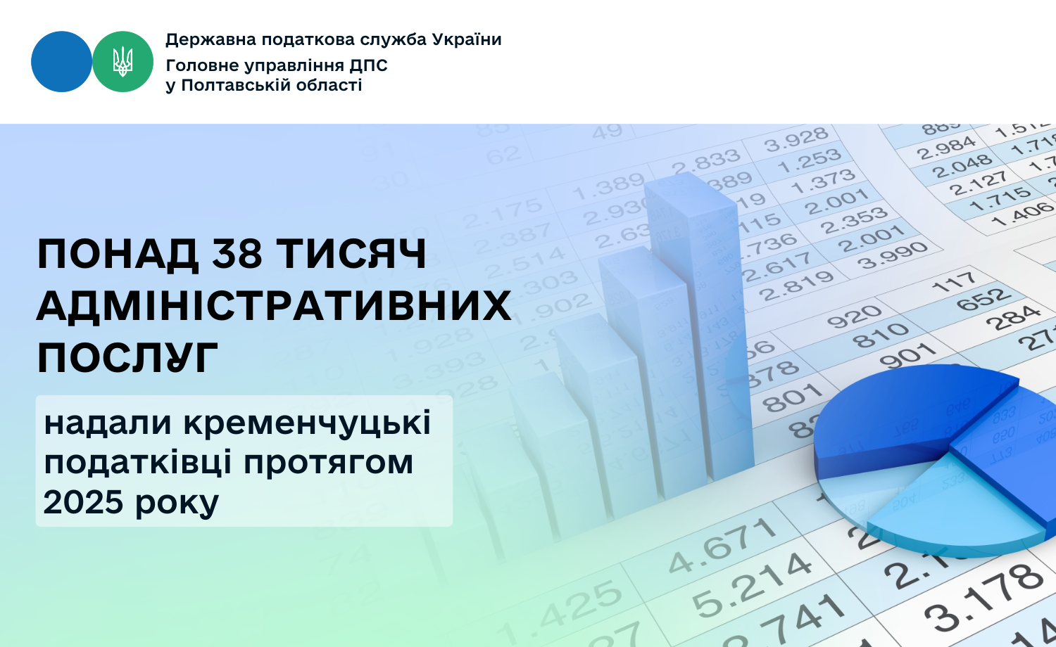 Протягом 2025 року фахівцями Кременчуцької ДПІ опрацьовано 40 006 звернень щодо отримання адміністративних послуг , з яких фактично надано 38 197.