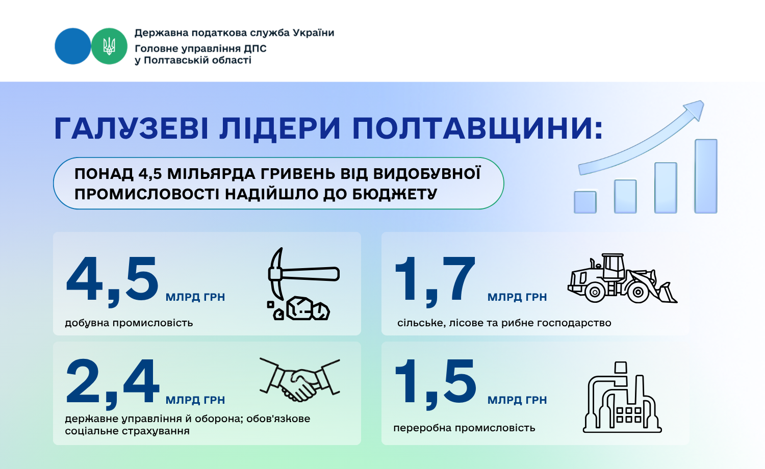 На початку 2026 року економічний потенціал Полтавської області перетворився на потужну фінансову опору для держави, демонструючи не лише стійкість традиційних секторів, а й суттєве нарощення темпів виробництва. За підсумками січня – березня галузева структура надходжень до Зведеного бюджету України підтвердила статус області як одного з ключових промислових хабів країни, де безумовним лідером стала добувна промисловість. Ця галузь забезпечила 4 млрд 533,4 млн грн (27,1 відсотка).