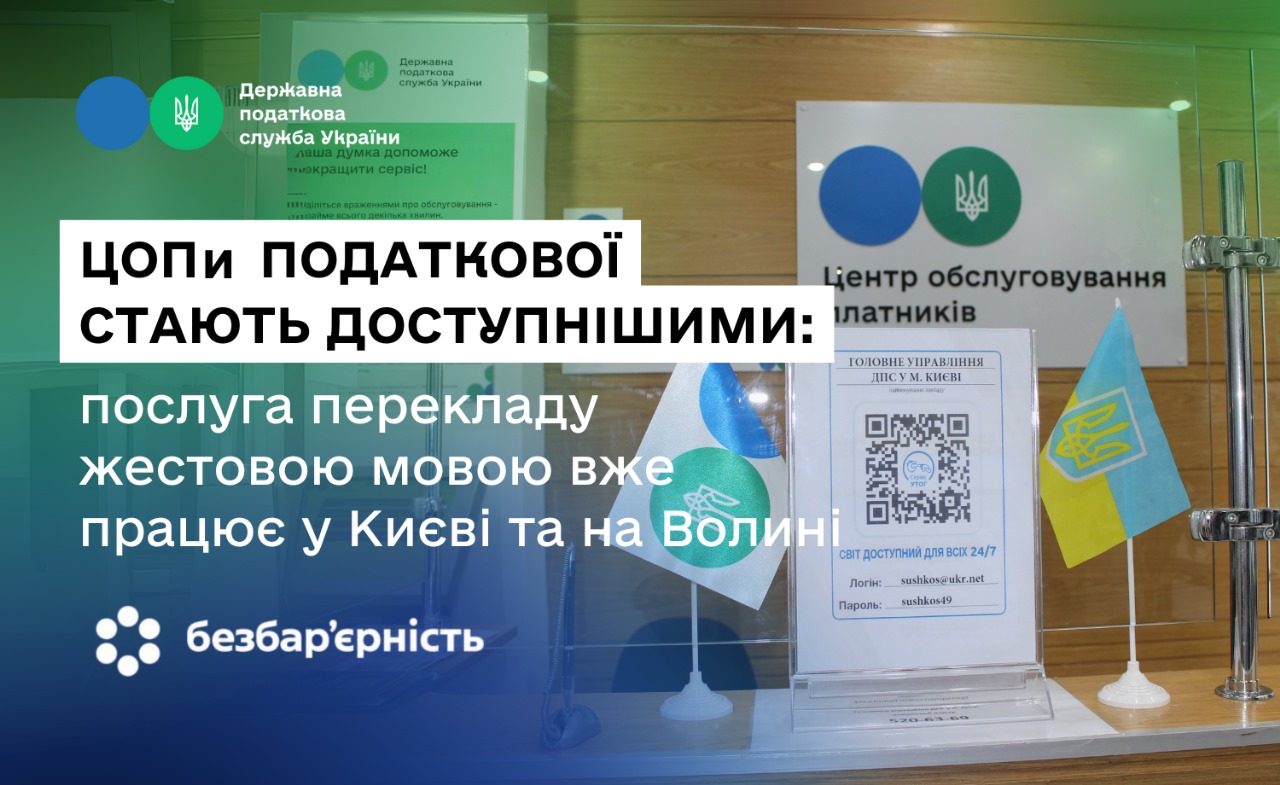 Зокрема, у Центрах обслуговування платників ГУ ДПС у м. Києві запроваджено послугу перекладу жестовою мовою для громадян з порушеннями слуху. Тепер платники можуть отримати адміністративні послуги швидко, зрозуміло та з урахуванням своїх індивідуальних потреб.