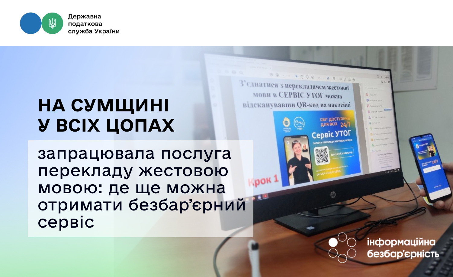 Щоб скористатися достатньо лише відсканувати QR-код, щоб отримати доступ до відеозв’язку з професійним перекладачем Українського товариства глухих (УТОГ).