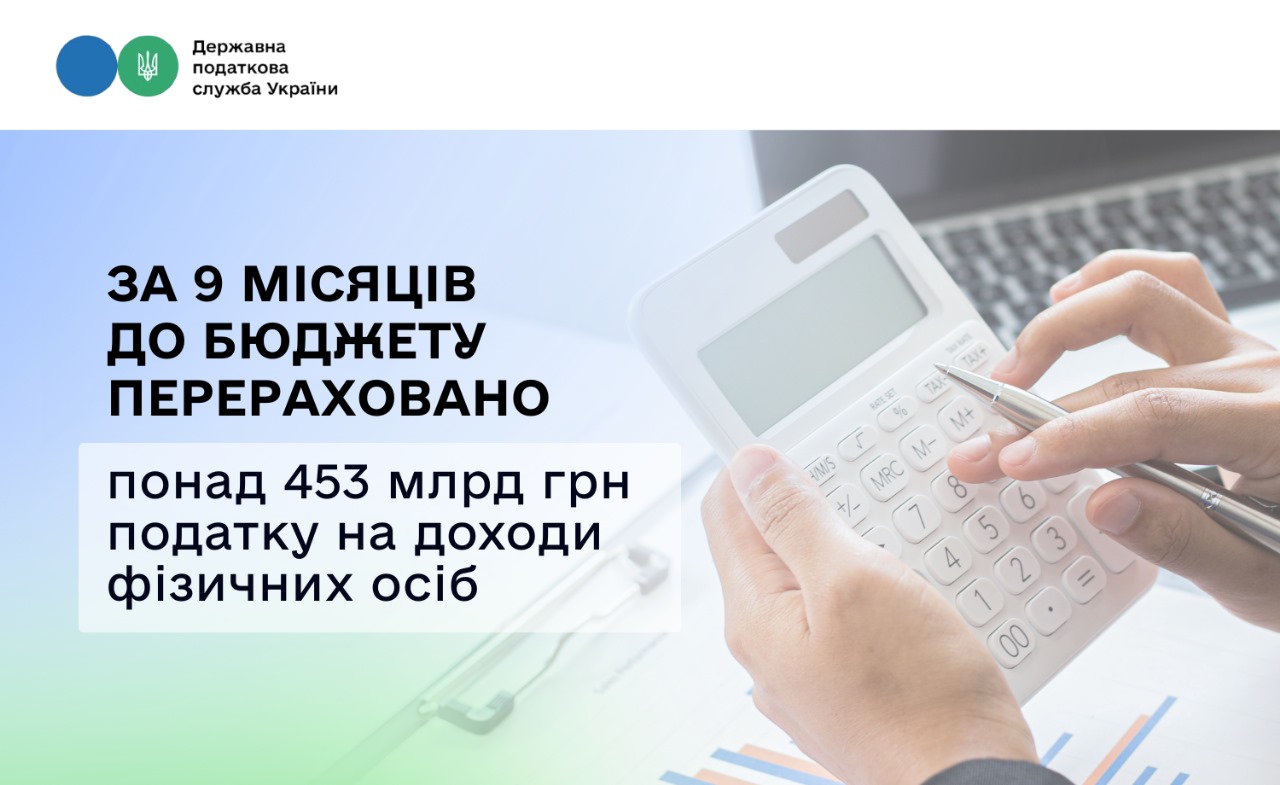 За січень – вересень 2025 року платники сплатили понад 453 млрд грн податку на доходи фізичних осіб. Порівняно з відповідним показником минулого року це більше на 18,8 %, або на 71,8 млрд гривень.