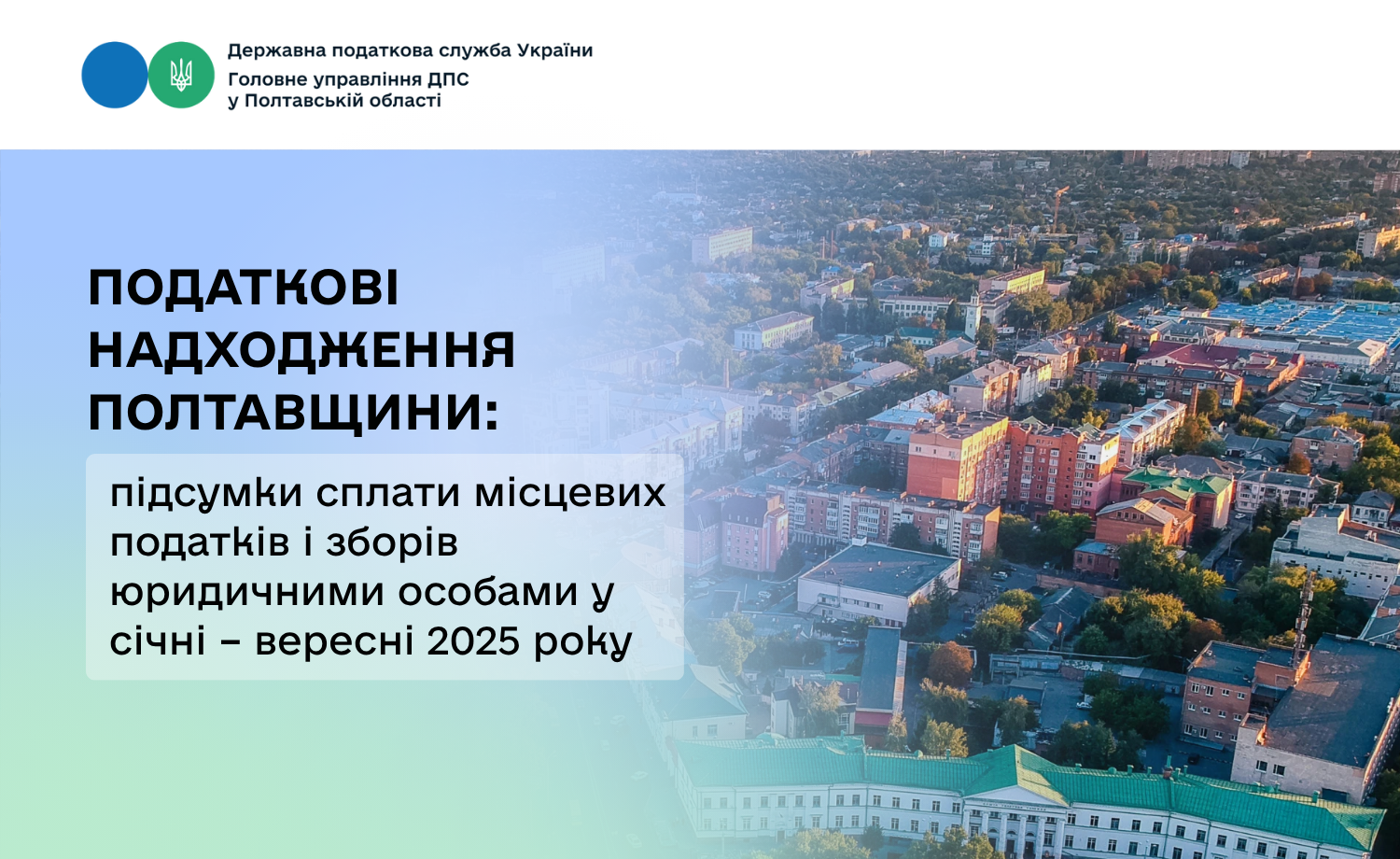 Податкові надходження Полтавщини: підсумки сплати місцевих податків і зборів юридичними особами у січні – вересні 2025 року