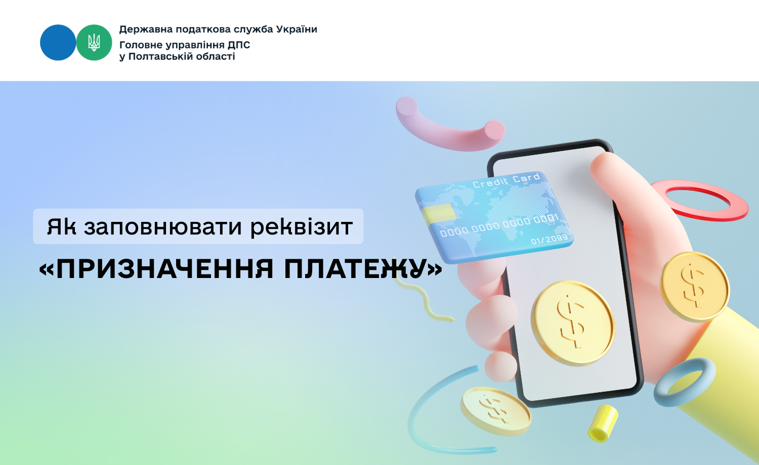 Головне управління ДПС у Полтавській області нагадує, що при сплаті податків, зборів, платежів, єдиного внеску на загальнообов’язкове державне соціальне страхування платники використовують виключно структурований формат реквізиту «Призначення платежу» платіжної інструкції відповідно до міжнародного стандарту ISO 20022.