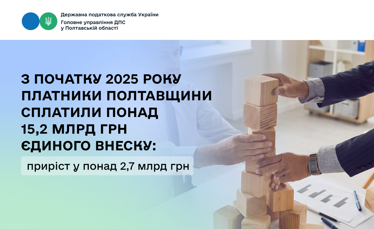З початку 2025 року платники Полтавщини сплатили понад 15,2 млрд грн єдиного внеску: приріст у понад 2,7 млрд грн
