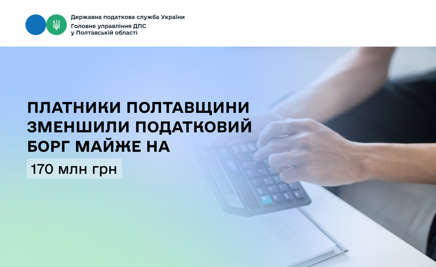 У січні – жовтні 2025 року мешканці та бізнес Полтавської області скоротили податкову заборгованість на 169,9 млн гривень. У Головному управлінні ДПС у Полтавській області зазначають, що таких результатів вдалося досягти завдяки комплексу заходів, спрямованих на погашення боргу та підвищення рівня добровільної сплати податків.