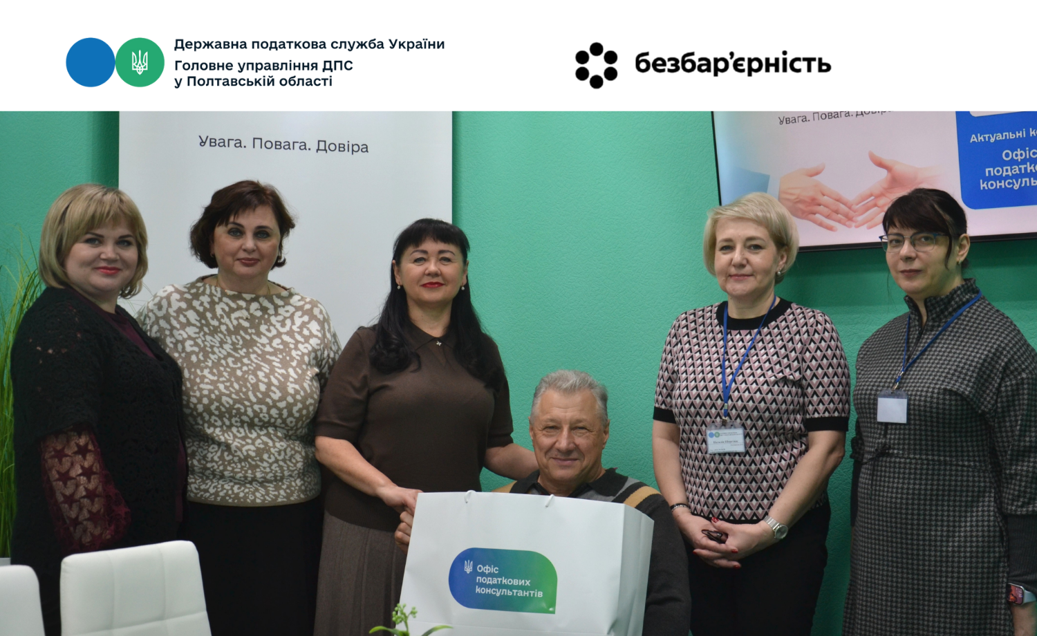 В Офісі податкових консультантів керівниця Офісу податкових консультантів Полтавщини Ірина Година та Сергій Чумак під час зустрічі також обговорили низку актуальних питань: пільгові ставки з єдиного соціального внеску на загальнообов’язкове державне соціальне страхування для осіб з інвалідністю, зручні електронні сервіси та сучасні кейси від ДПС, які допомагають швидко та без бар’єрів комунікувати з контролюючим органом і вирішувати податкові питання зручно та дистанційно.