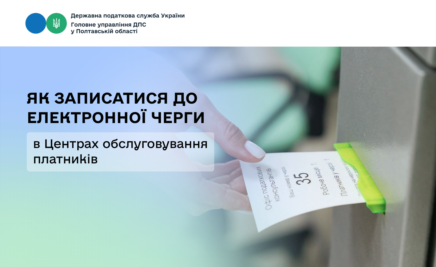 У Головному управлінні ДПС у Полтавській області нагадують, що до електронної черги для відвідування Центрів обслуговування платників можна записатись онлайн на Загальнодоступному інформаційно-довідковому ресурсі за посиланням: zir.tax.gov.ua/main/queue.