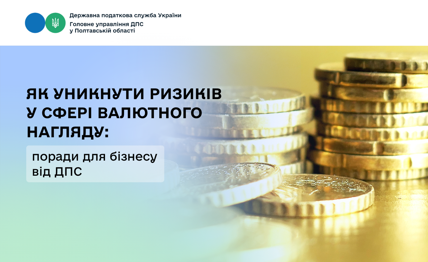 Головне управління ДПС у Полтавській області повідомляє, що Державна податкова служба України звертає увагу суб’єктів зовнішньоекономічної діяльності на важливість дотримання вимог валютного нагляду задля уникнення можливих ризиків.