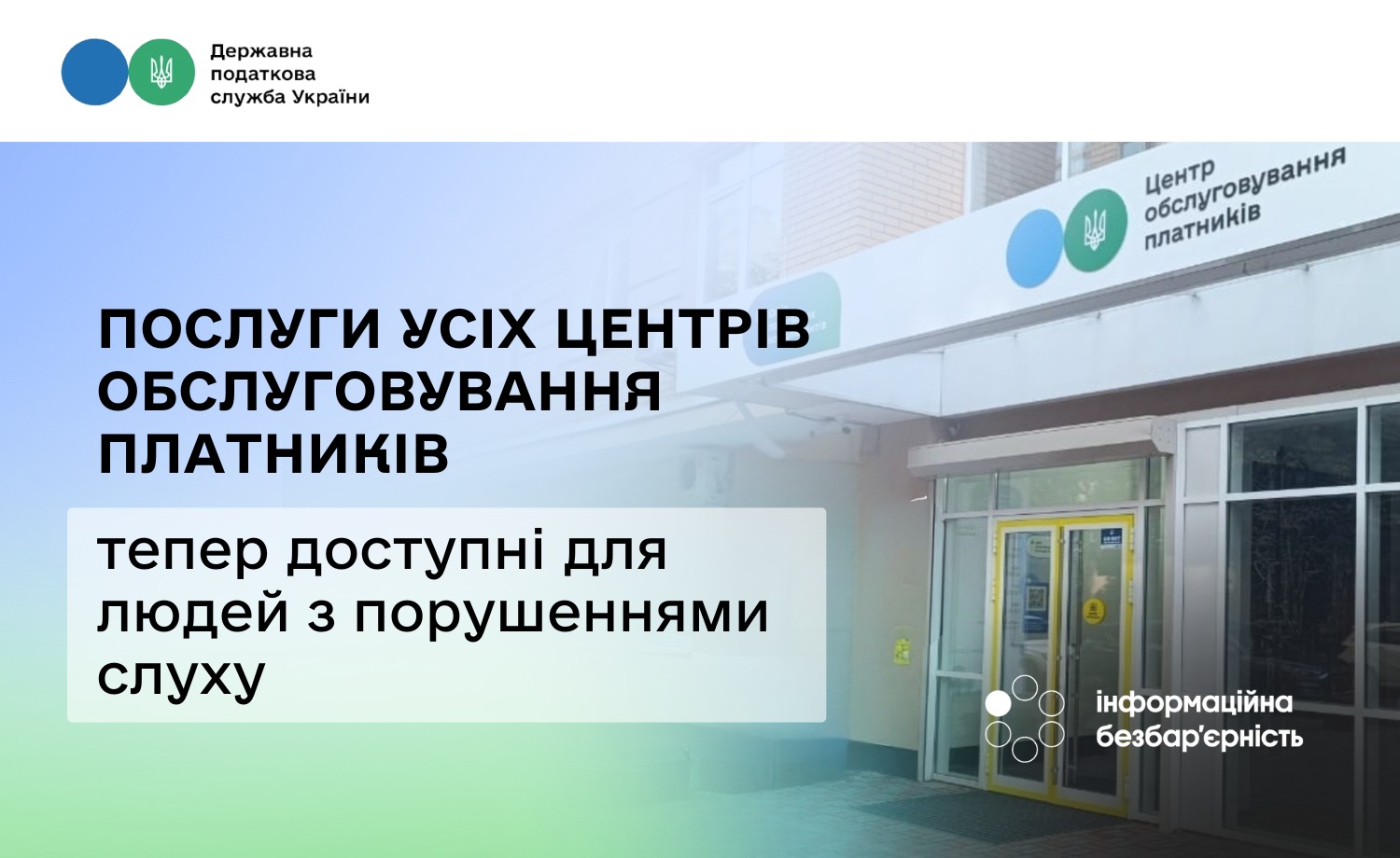 Послугу перекладу на жестову мову впроваджено в усіх Центрах обслуговування платників на території України, що дає змогу відвідувачам з порушеннями слуху отримувати будь-яку консультацію чи послугу на рівних умовах з іншими платниками податків.