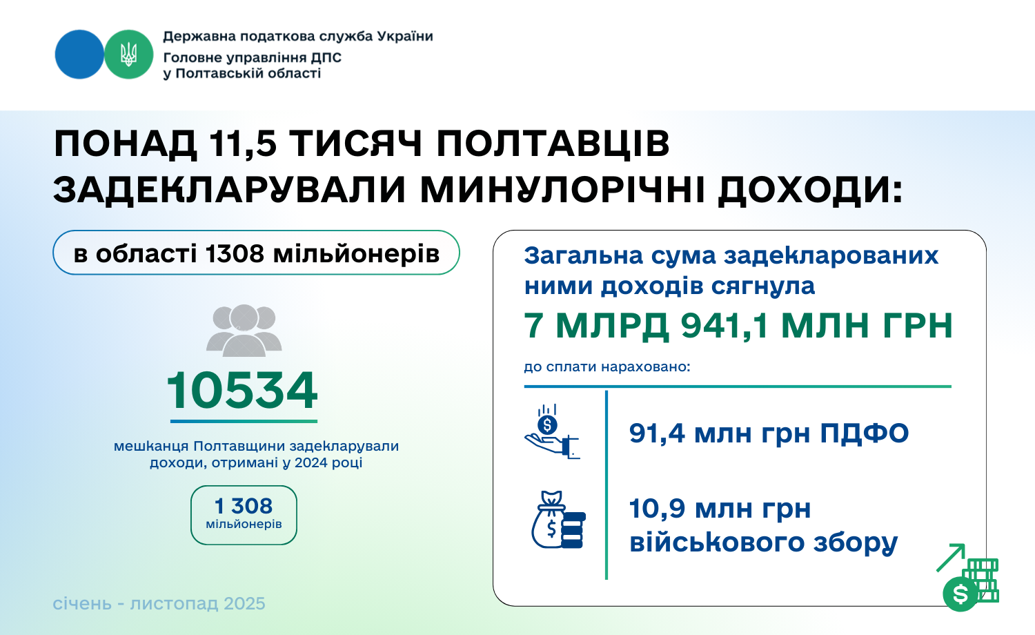 З початку 2025 року мешканці Полтавщини активно виконують свій громадянський обов’язок, декларуючи доходи, отримані протягом 2024 року.