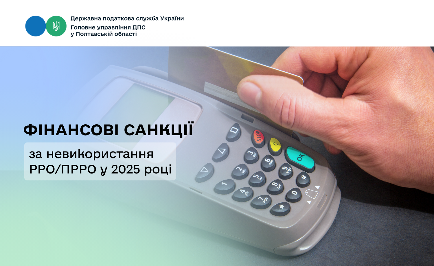 Головне управління ДПС у Полтавській області звертає увагу суб'єктів господарювання, що відповідно до пункту 15 розділу ІІ «Прикінцеві положення» Закону України від 06.07.1995 № 265/95-ВР «Про застосування реєстраторів розрахункових операцій у сфері торгівлі, громадського харчування та послуг» (далі – ЗУ № 265/95-ВР), із змінами і доповненнями, у період з 01 серпня 2023 року по 31 липня 2025 року, але не пізніше ніж до дати припинення або скасування воєнного стану на території України, до фізичних осіб – підприємців, які є платниками єдиного податку та не зареєстровані платниками податку на додану вартість, що здійснюють діяльність з продажу товарів (крім підакцизних товарів, технічно складних побутових товарів, що підлягають гарантійному ремонту, лікарських засобів, виробів медичного призначення, ювелірних та побутових виробів з дорогоцінних металів, дорогоцінного каміння, дорогоцінного каміння органогенного утворення та напівдорогоцінного каміння) або надають послуги, фінансова відповідальність за проведення розрахункових операцій з використанням реєстраторів розрахункових операцій (далі – РРО), програмних РРО (далі – ПРРО) або розрахункових книжок на неповну суму вартості проданих товарів (наданих послуг), непроведення розрахункових операцій через РРО та/або ПРРО з фіскальним режимом роботи, невидачу (у паперовій та/або електронній формі) відповідного розрахункового документа, що підтверджує виконання розрахункової операції, або проведення її без використання розрахункової книжки на окремому господарському об’єкті такого суб’єкта господарювання застосовується у таких розмірах: