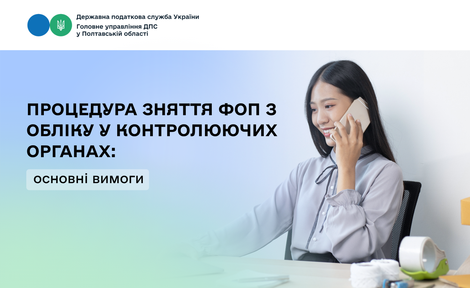 Головне управління ДПС у Полтавській області інформує, що підставою для зняття з обліку податків, зборів, платежів та єдиного внеску на загальнообов’язкове державне соціальне страхування (далі — Єдиний внесок) у контролюючих органах є надходження відомостей про державну реєстрацію припинення підприємницької діяльності фізичної особи – підприємця із зазначенням номера та дати внесення відповідного запису до Єдиного державного реєстру юридичних осіб, фізичних осіб – підприємців та громадських формувань.
