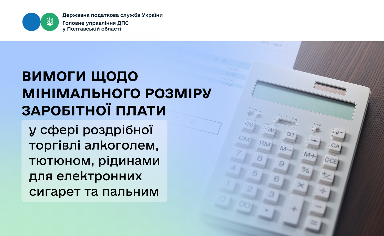 У Головному управлінні ДПС у Полтавській області повідомляють, що для суб’єктів господарювання, які вроздріб торгують алкогольними напоями, тютюновими виробами, рідинами для електронних сигарет та пальним, з 1 жовтня 2025 року запроваджено вимоги щодо мінімального розміру середньої щомісячної заробітної плати або загального місячного оподатковуваного доходу.