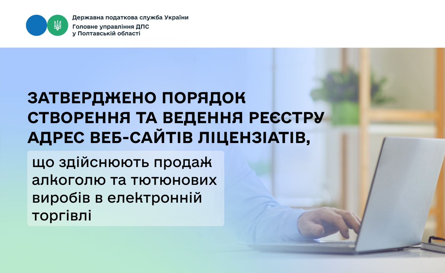 Головне управління ДПС у Полтавській області повідомляє, що 24 жовтня 2025 року набрала чинності постанова Кабінету Міністрів України від 22.10.2025 № 1320, якою затверджено Порядок створення та ведення Реєстру адрес веб-сайтів ліцензіатів, що здійснюють продаж пива (крім безалкогольного), алкогольних, слабоалкогольних напоїв, тютюнових виробів, електронних сигарет, рідин, що використовуються в електронних сигаретах, пристроїв для споживання тютюнових виробів без їх згоряння шляхом електронної торгівлі (з використанням засобів дистанційного зв’язку або через інтернет-магазини) (далі – Реєстр).
