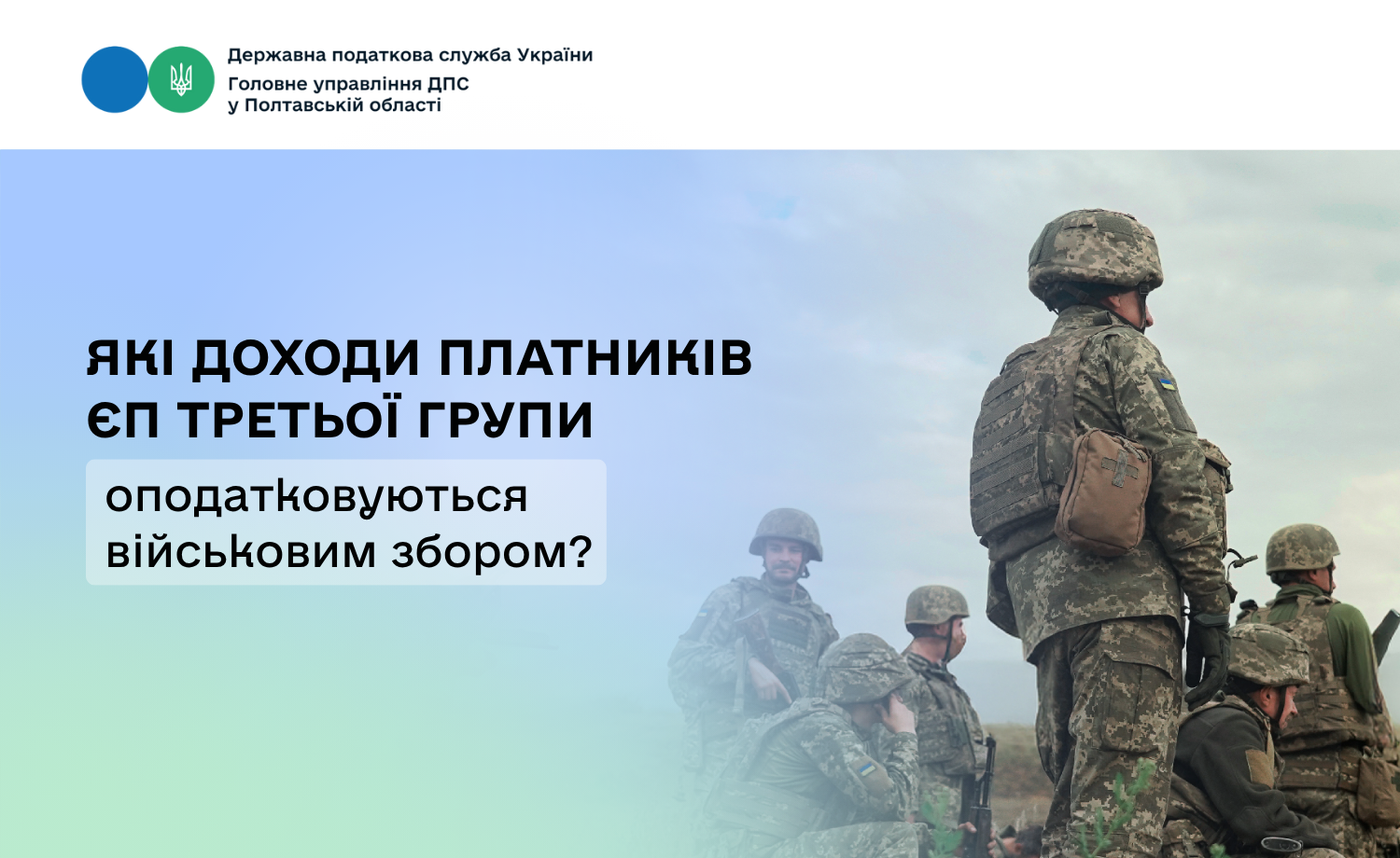 Головне управління ДПС у Полтавській області повідомляє, що з згідно з Податковим кодексом України платники єдиного податку третьої групи є платниками військового збору.