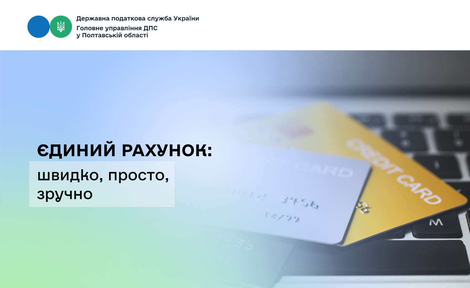 Головне управління ДПС у Полтавській області інформує, що єдиний рахунок – це рахунок, відкритий у Державній казначейській службі України на ім’я ДПС. Він використовується для сплати податків і зборів. Це зручний спосіб, адже він дозволяє економити час та спрощує формування розрахункових документів.