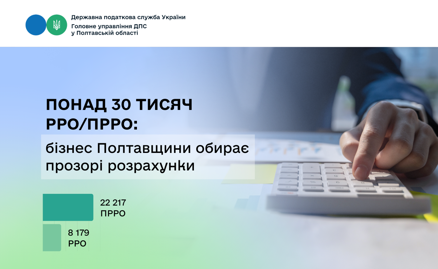 У Головному управлінні ДПС у Полтавській області повідомляють, що станом на 1 січня 2026 року в податковій службі області зареєстровано 30 396 реєстраторів розрахункових операцій. Із загальної кількості: