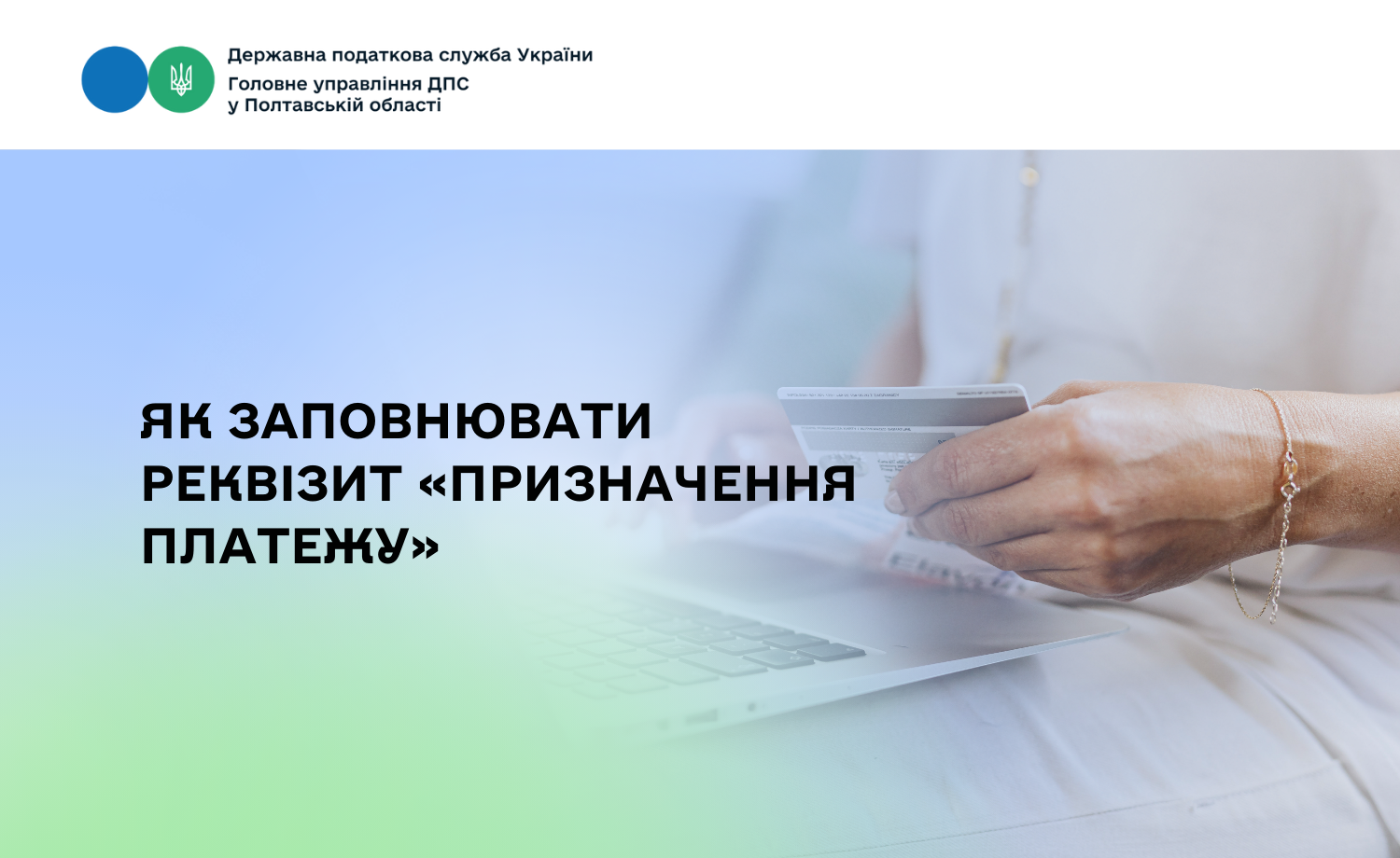 Головне управління ДПС у Полтавській області нагадує, що при сплаті податків, зборів, платежів, єдиного внеску на загальнообов’язкове державне соціальне страхування платники використовують виключно структурований формат реквізиту «Призначення платежу» платіжної інструкції відповідно до міжнародного стандарту ISO 20022.